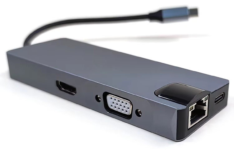 This multifunction USB 3.1 Type-C hub integrates USB 3.0 ports, HDMI 4K, VGA, Gigabit Ethernet (RJ45), card reader, and PD charging, providing a complete connectivity solution for modern laptops and computers with a single adapter.